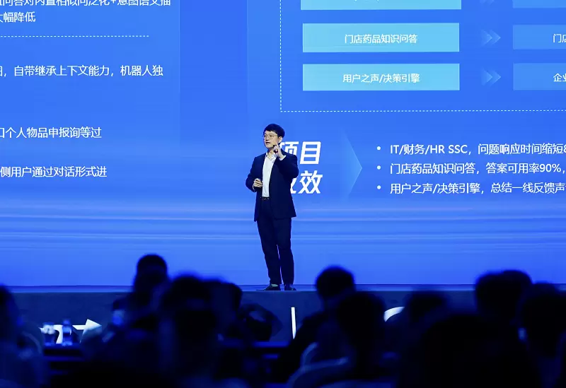 演讲中他特别提到,大参林医药集团利用腾讯云大模型知识引擎深度优化内部办公协同、药品知识问答、销售助手和用户体验收集等场景,通过AI问答机器人“AI小参”,使约5万名员工在百科App和企业微信平台上实现24小时智能问答服务,从而大幅提升了数字化运营效率。