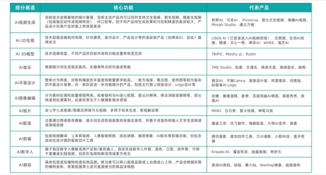 作为近两年的明星AI公司,美图公司旗下多款AI产品入选,美图秀秀、美图云修入选AI图像编辑领域,美图设计室入选AI平面设计领域,开拍入选AI剪辑领域,WHEE入选AI 2D生图领域,MOKI入选AI短片领域。