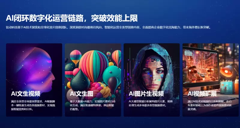 作为业内知名的出海服务商,钛动科技深刻洞察到了这一趋势,积极将AI工具融入出海营销,并开发了为出海企业量身打造的AI产品,为企业出海注入新兴动能。