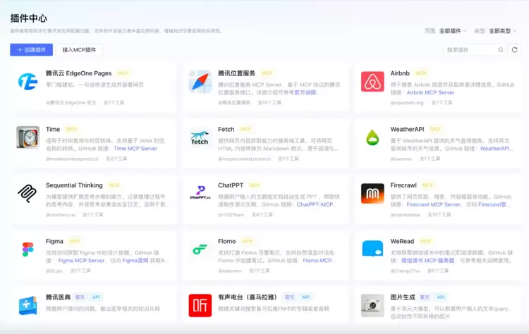 目前知识引擎平台已经上线了多款MCP Server,包括腾讯云EdgeOne Pages、腾讯位置服务、Airbnb、Figma、Fetch等,涵盖各类专业信息获取、网页部署和预览、网页解析获取等场景。精选MCP插件之外,用户也可以按照 MCP 协议配置已经部署的MCP SSE服务,在应用中灵活调用。