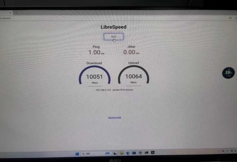 直连网速实测:上下行均超过10000Mbps
