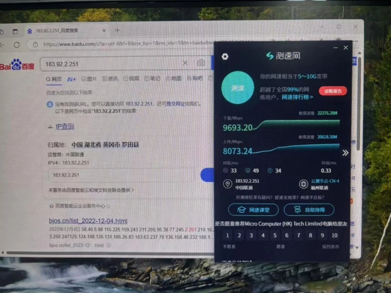 公网网速实测:上下行均超过9000Mbps