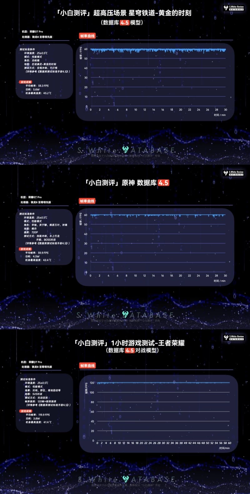 根据极客湾Geekerwan、小白测评等媒体的性能测试结果显示,荣耀GT Pro在重负载游戏场景下,帧数表现、功耗表现以及温度控制远优于竞品。猜测除了“最强性能铁三角”等硬件参数优势外,全新升级的荣耀幻影引擎也让荣耀GT Pro的游戏体验更进一步。