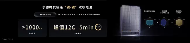 宁德时代钠新电池作为全球首款大规模量产的钠离子电池,打破了资源边界,夯实了新能源的基础;骁遥双核电池开创了跨化学体系的全新设计,打破单一路线的技术边界,满足用户的定制化需求;第二代神行超充电池凭借峰值12C充电倍率,再次刷新全球超充纪录。