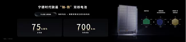 ●钠-铁双核电池——:钠新电池+磷酸铁锂自生成负极电池,充分利用钠新电池的低温性能,为用户带来不止低温更要远航的极致体验 。