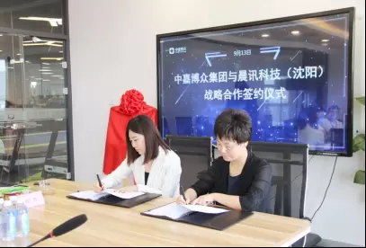 2018年9月13日,中嘉博众集团与晨讯科技(沈阳)有限公司合作签约仪式在沈阳举行。此次签约,中嘉博众集团与晨讯科技集团在推进中职物联网行业人才培养,共建实训基地上正式达成战略合作。晨讯科技(沈阳)有限公司行政总经理乔春华,招聘经理邸颖红,培讯经理张扬,总务经理李志安与中嘉博众集团董事长兼总裁、沈阳国际软件园人才服务有限公司董事长匡永双,副董事长兼高级副总裁温波,副总裁张迁,高级顾问李梅,中职事业部总监、沈阳星光技工学校校长王欣,副校长赵欣出席了仪式。