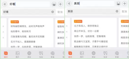 搜狗输入法一直提供舒适的输入体验,以及更智能的应用。就像搜狗输入法的智能分享功能,简直就是无所不知的百科全书。除了无所不知,操作更是简单到“傻瓜”级别。写作业学习交流遇到不会的问题,直接键盘输入问题或者问题关键词,点击键盘右上角的“搜索”即可get答案。即使是开放思维像语文一样的作业也能搞定,比如用古诗词夸人好看,输入“美丽”点击搜索,好诗替换会提供超多夸人的诗句,以后不用担心古诗词记不住咯~