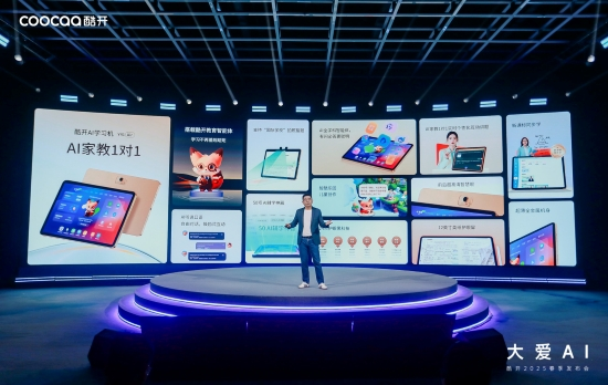 同步推出的酷开闺蜜机C20系列和学习机Y41 Air,针对家庭场景深度优化。闺蜜机C20系列搭载可移动屏幕,实现多空间影音联动;学习机Y41 Air首创思维训练模式,通过AI互动提升学习主动性。两款设备均深度集成超级智能体,通过原子化组件实现服务直达。