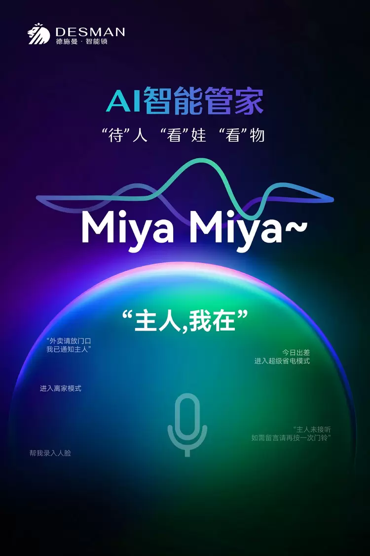 德施曼AI智能管家Miya让智能锁灵性进化,既能收外卖、看快递,与物业、邻居等人员进行场景化沟通,还能实现儿童出门提醒、快递到达或移动提醒,实现家庭助理模式。