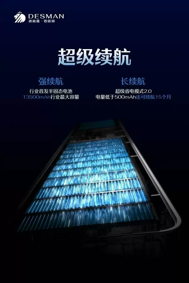 德施曼首发超级省电2.0技术,一次充电,陪你守护四季,当电池电量低于500mAh,自动进入超级省电模式,续航时长超15个月;有效解决旅行不在家、出差不在家、闲置不常住等场景下的续航焦虑。