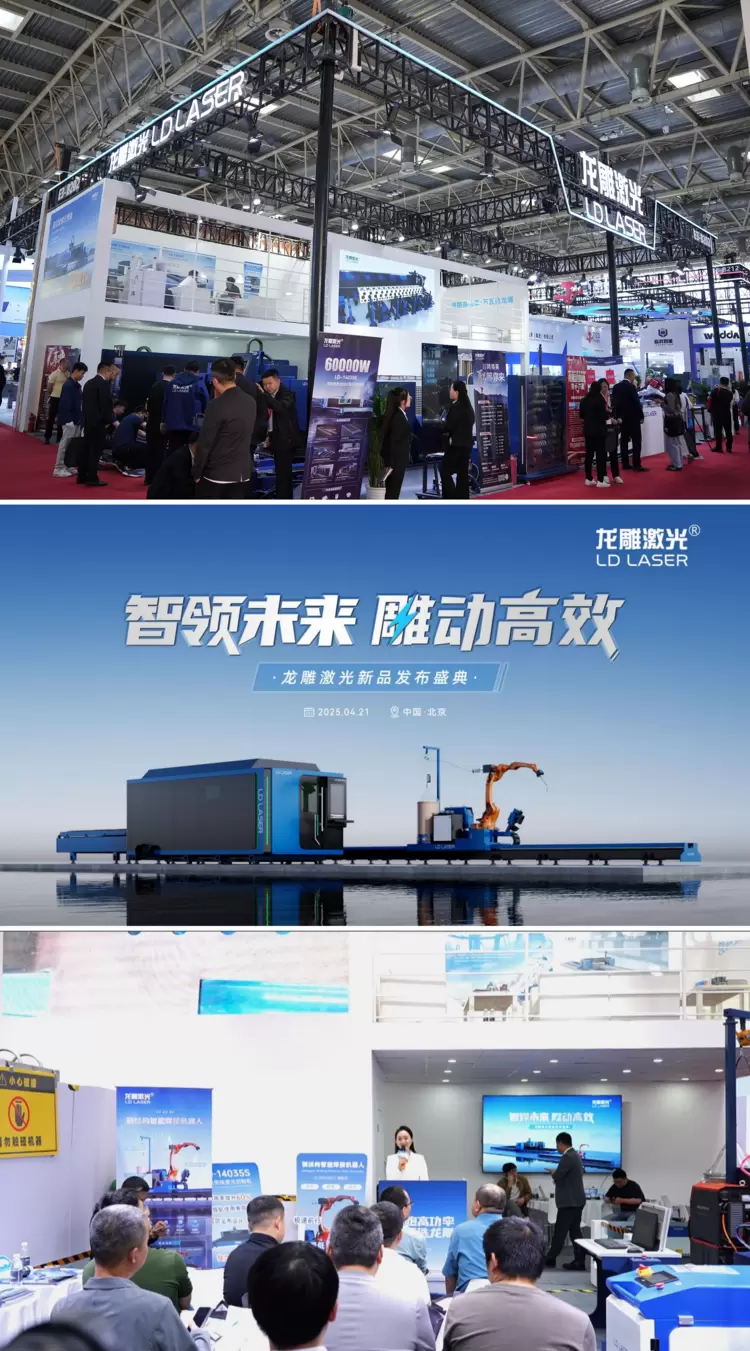 2025年4月21日,北京首都国际会展中心人潮涌动。作为全球工业制造领域的重要风向标,第十九届国际机床展览会盛大开幕。龙雕激光作为高功率激光切割设备领军企业,展会期间重磅发布了LDW智能焊接机器人及8万瓦超高功率侧挂地轨两款战略级新品,携LD-3015E-G高速机、手持焊接一体机等明星产品矩阵震撼亮相北京展,共同演绎了一场关于智能制造的未来图景。
