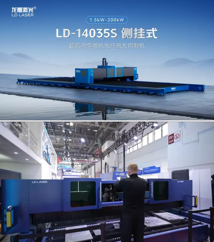 龙雕激光华北区总监张亮对14035S地轨侧挂进行发布,展现了龙雕在超大型构件加工领域的技术和设计双突破。Y轴导轨齿条创新性采用侧挂式设计,叠加钣金防护,有效防止上下料磕碰/砸伤齿条导轨;去除传统的伸缩式防尘罩,减少客户使用成本;取消防尘布压缩空间,减少占地面积,提高场地利用率提升60%。独立式模块化导轨设计,日常更换、清理料渣节约生产成本。加工幅面可定制,轻松拿捏整板切割节奏,无畏厚板挑战,兼具在超大空间动态补偿方面的技术优势,特别适用于船舶制造、道路桥梁、风电/通信铁塔等重型工业场景。