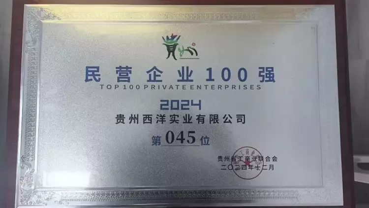 此次入选“贵州民企百强”,既是对企业综合实力的权威认可,更是对西洋实业推动区域经济与农业绿色发展的高度肯定。