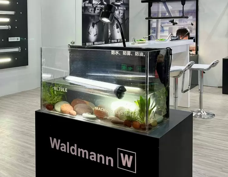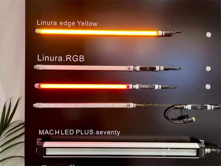防水、防油、防雾的管状灯系列(RL70, MACH LED PLUS.forty, MACH LED PLUS.seventy和CINO)凭借其卓越的防护性能成为本次展会的焦点之一。展会期间特别设置的浸水展示装置,直观生动地演示了这些灯具即使完全浸没在水中也能正常工作、密封性出色的特点,给观众留下了深刻印象。这正是它们在恶劣机床环境下可靠运行的有力证明。