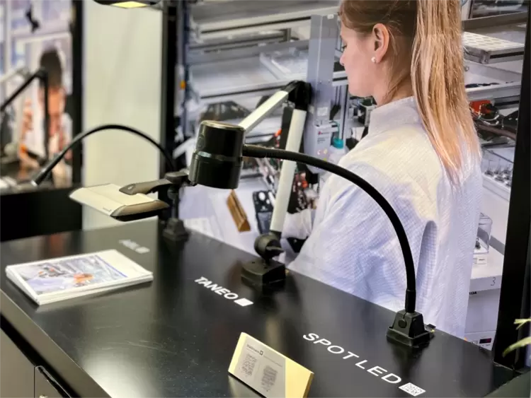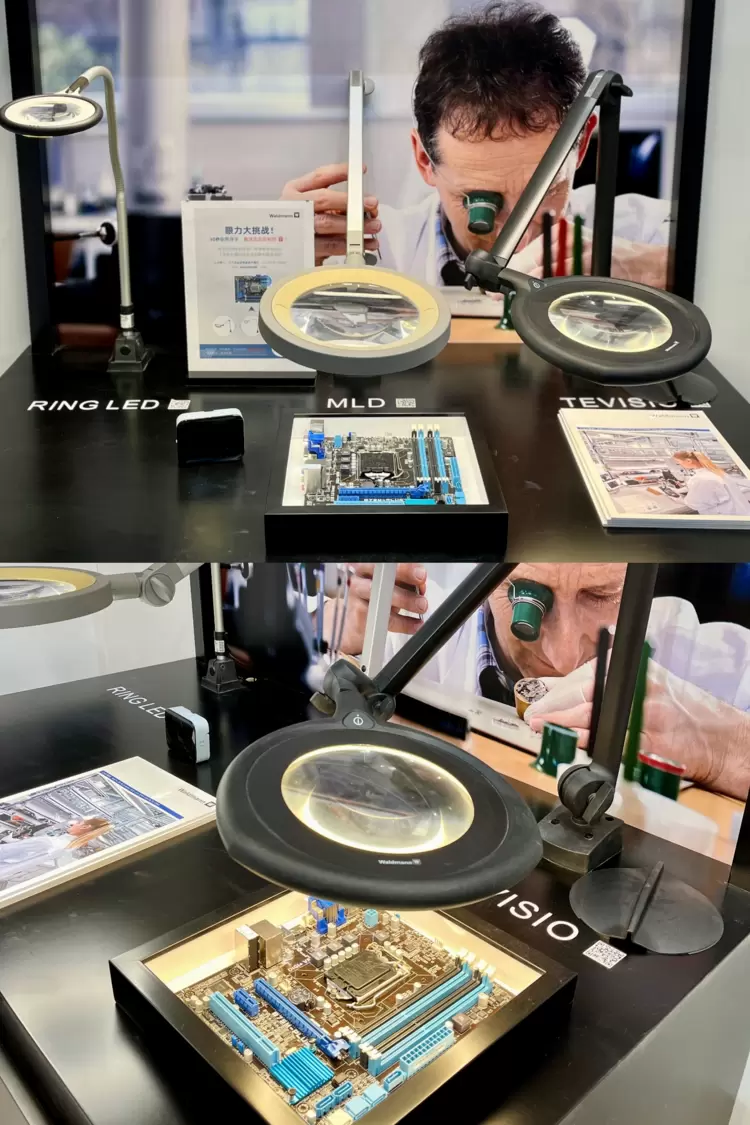转移到工作场所照明区域,沃达迈的放大镜灯系列(包括MLD, RING LED, TEVISIO)以其无畸变放大效果和最优的光线环境,吸引了大量对精密细心操作有需求的行业人士,尤其获得了来自珠宝、钟表、收藏品修复等领域专业人士的高度评价。