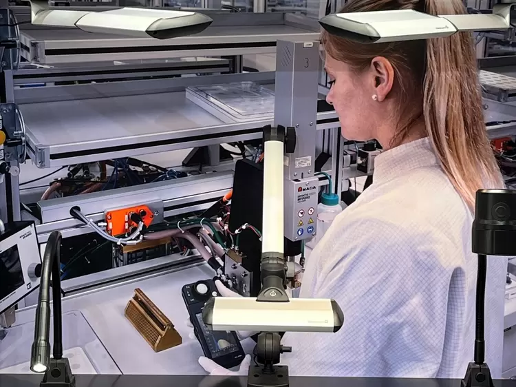 LINURA.edge系列信号灯,不仅可以提供强大均匀的白光照明日常作业流程,更能通过不同颜色指示生产状态,展示了智能照明在生产流程监控和可视化管理中的先进应用。