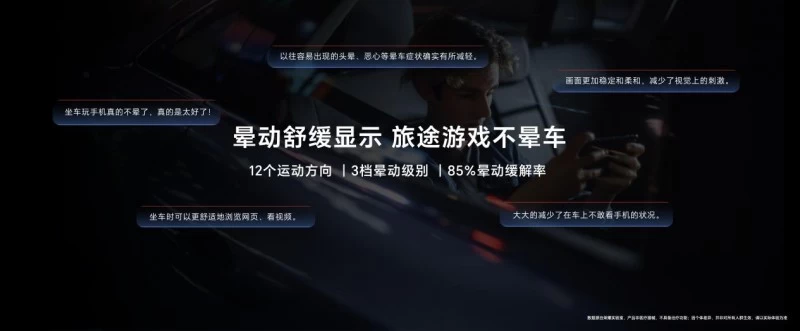 荣耀GT Pro还支持晕动舒缓显示功能,在用户乘坐车辆等交通工具时,通过AI智能算法,将人在交通工具上感受到的运动信息,通过在屏幕两侧可移动圆点实时呈现出来。缓解用户在车辆等交通工具上的晕动症状,提供更舒适的出行体验。