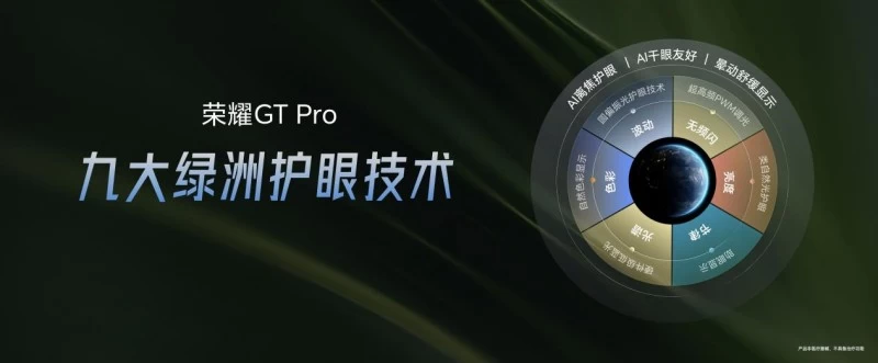 荣耀持续引领行业护眼赛道,荣耀GT Pro支持九大荣耀绿洲护眼特性,覆盖了自然光的波动、频闪、亮度、节律、光谱和色彩六大维度,还提供了AI离焦护眼、AI干眼友好和晕动舒缓显示三大辅助护眼功能,通过了德国莱茵全局护眼4.0权威认证。