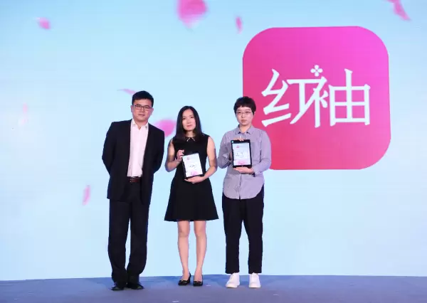 图:阅文集团副总裁傅徐军(左)宣布知名作家侧侧轻寒(中)、尼罗(右)入驻红袖读书