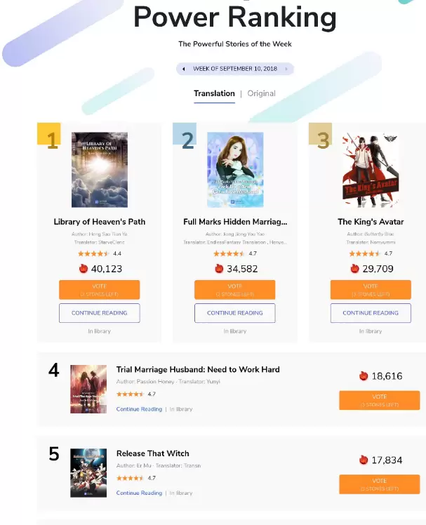 图:起点国际Power Ranking 排名前5的作品中,女频作品占据2席