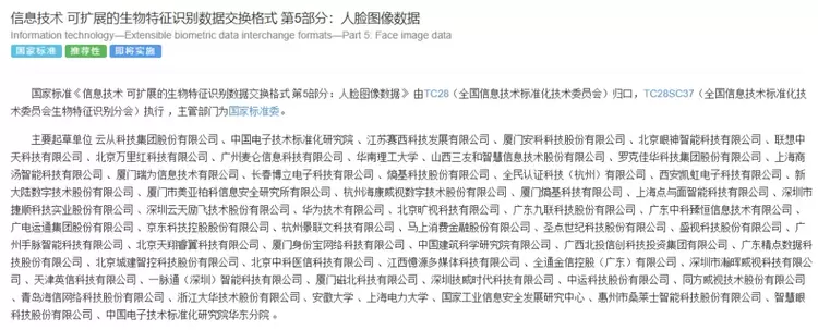 近日,GB/T 26237.5-2023《信息技术 可扩展的生物特征识别数据交换格式 第5部分:人脸图像数据》国家标准正式发布,该标准于2025年10月1日开始实施。