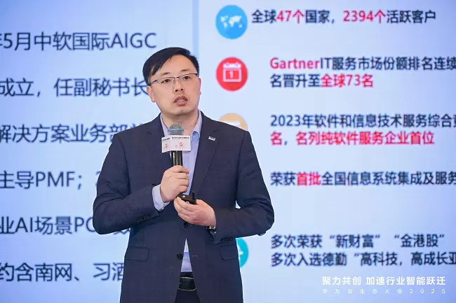 在华为销售伙伴CTO圆桌会议上,中软国际 AIGC解决方案业务部总经理黄高尚发表《携手华为,乘云而上,AI时代端到端服务客户》主题演讲,深入讲解与华为云共创的某酒业集团数字化转型项目。针对集团从传统可视化大屏向智能交互系统的升级需求,中软国际联合华为云突破三大技术难点,大幅提升企业参观交互效率和客户复购率,推动其从生产型企业向文化体验型品牌转型。目前,中软国际正将酒业经验复制至港口、影视等领域,并与华为云共建智算生态底座,加速实现行业价值转化。