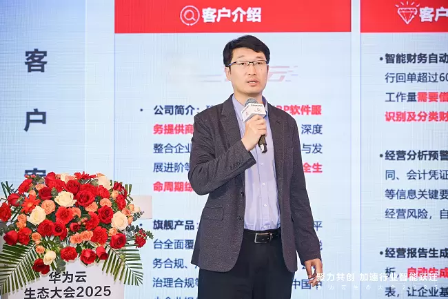 在华为销售伙伴CTO圆桌会议上,深圳市宝腾互联科技有限公司销售总监邓飞进行了客户的应用场景介绍,帮助客户在财税单据处理等场景进行了效率提升。