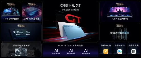 荣耀平板GT搭载定制天玑处理器,配合HONOR Turbo X调校技术,通过AI渲显分离、触控增强等功能优化游戏帧率稳定性和操作响应速度。官方测试显示,《王者荣耀》《原神》等游戏均可实现高帧率稳定运行。此外,平板内置八扬声器与冰封散热系统,强化沉浸式体验。