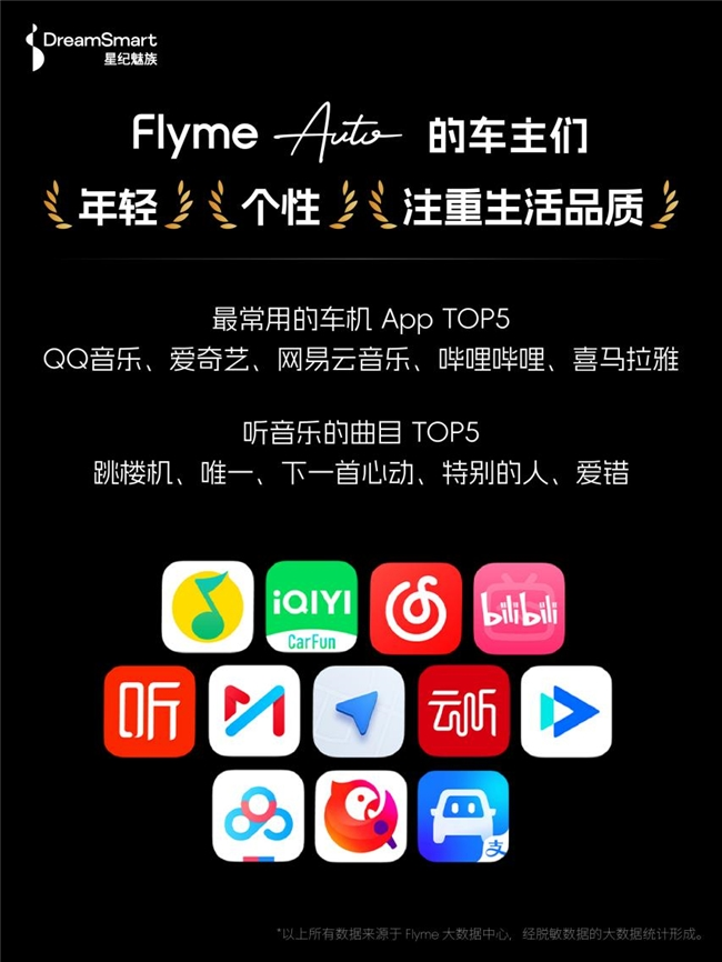 庞大的用户数量,并不是纸面上的统计数字,而是一群注重生活品质的人。据官方统计,Flyme Auto 用户主要来自东南沿海和新一线城市,他们年轻、有个性、注重生活品质,91.6% 的车主都会选择周末出游;他们喜欢手车互联,95.3% 的用户注册了 Flyme 账号,45.5% 的用户会通过手机流转地址导航,魅族是他们选择国产手机的TOP3 品牌;他们注重仪式感,“上车仪式感”和“公主请上车”是Flyme Auto 用户的常设模式,QQ音乐、爱奇艺、网易云音乐、哔哩哔哩和喜马拉雅是最常用的 5 款 App;他们喜欢和 AI 语音助手互动,闲聊占比达到 47.8%,还会用车机玩“滑雪大冒险”等亲子游戏……Flyme Auto 已然成为他们生活中的重要元素。