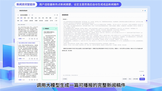 智媒创作智能体精准聚焦“制、编、播”等核心业务环节,基于多模态大模型技术,实现音、视、图、文全媒体素材的智能创作-自动编排-精准分发闭环。支持新闻稿、口播稿、短视频脚本等一键生成,适配小红书、公众号等多元场景;独创“生稿计划”功能,可预设分类、时长、主播风格等参数,实现全自动内容生产,大幅提升内容生产效率与质量。