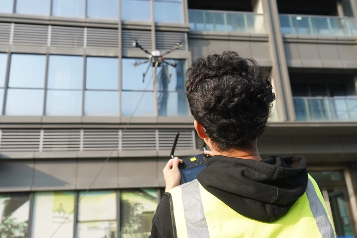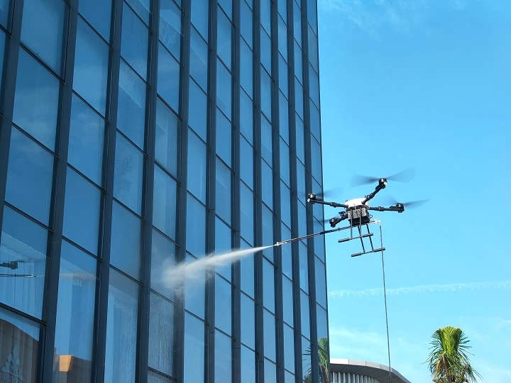 九思智能D15R无人机赋能高空清洁:技术革新引领行业降本增效 ——智能空中清洗无人机破解高危作业难题