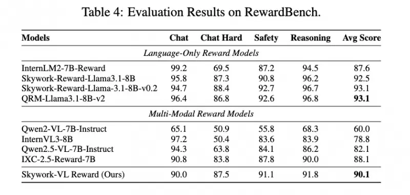 技术亮点一:推出多模态奖励模型 Skywork-VL Reward,全面开源