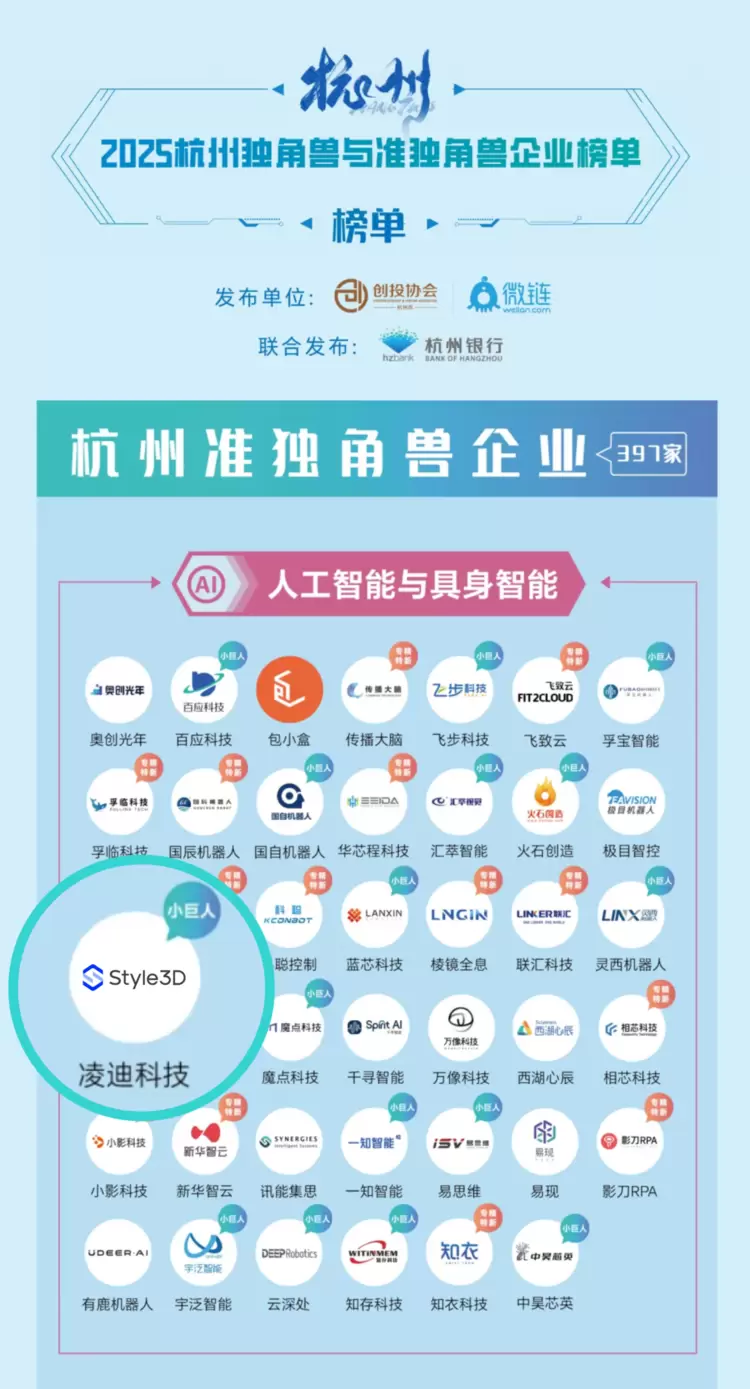 - AI实力认证!Style3D 获评杭州准独角兽及 AI“十八罗汉”