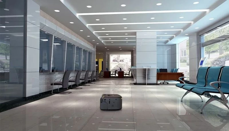 萤石BS1在杭州某银行网点负责约400㎡的大厅地面清洁工作,以高效清洁、智能避障等功能满足每天3次清洁工作,保障营业期间正常工作秩序。依托多目视觉计算系统,萤石BS1的灵活避障、丝滑绕障能力避免碰撞来往客户及工作人员;凭借语义贴边和小型化设计外观,能有效清洁大厅桌椅、设备边角等狭窄区域,清洁更彻底。无需人工干预的超能基站,确保了萤石BS1在夜间或非营业时间的湿拖清洁工作,自动添加的清洁液和除菌液,能比较彻底地清除脚印、污渍,清洁的同时兼顾消杀工作。