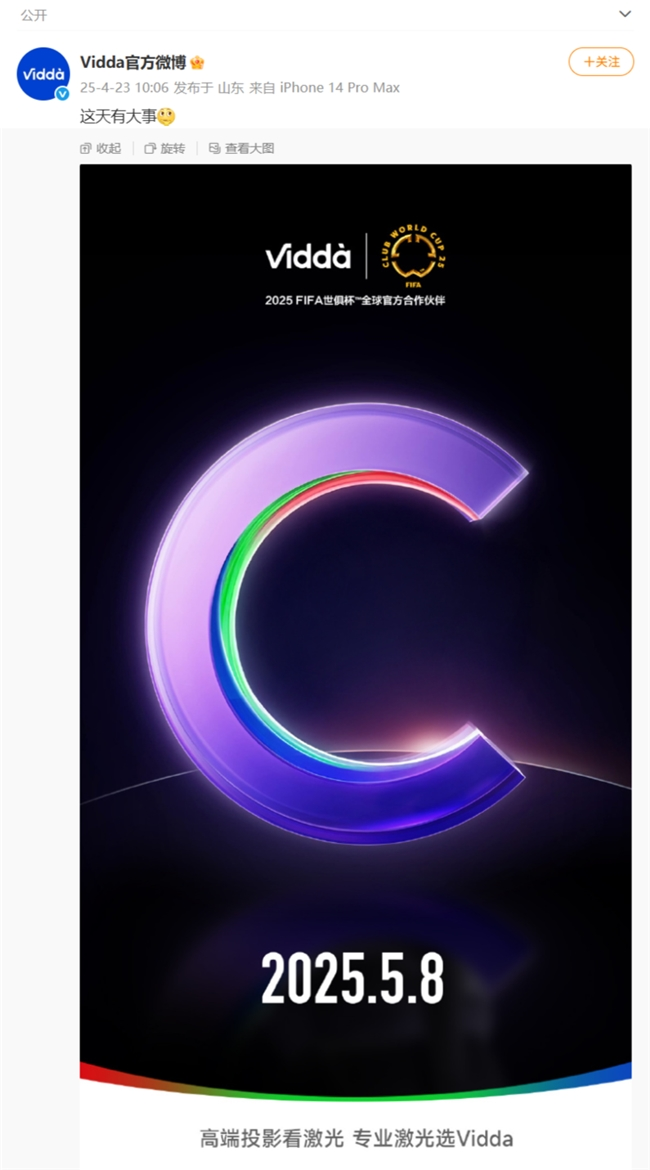 - Vidda官宣5月8日重磅新品揭晓 不虚标已成投影行业共识