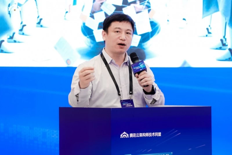 腾讯云存储研发总监严俊明做《面向大模型时代的云存储架构》的主题报告。
