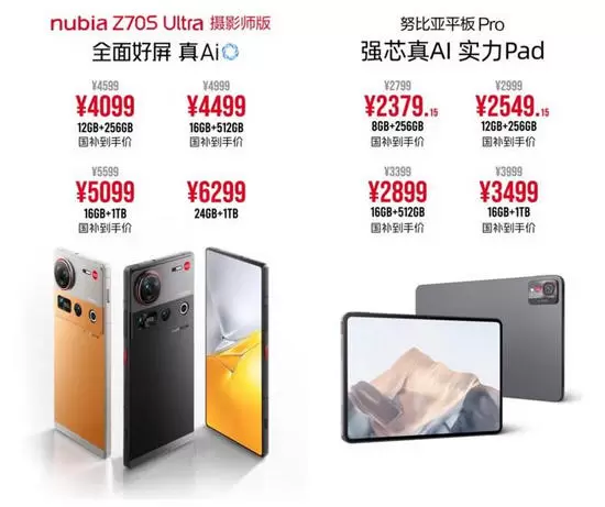 AI双旗舰 努比亚Z70S Ultra摄影师版与努比亚平板 Pro正式发布
