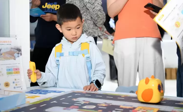 绘本机器人旁边,淘小鹰编程机器人的“小镇救援”也吸引了许多乐于助人的“小英雄”。孩子们用实物指令卡为机器人规划路线,指挥它用最短的时间,穿越障碍、营救“受伤的小熊”。“将抽象的逻辑思维过程借助实物表现出来,更符合孩子的认知特点。”一位小学科技老师评价道。