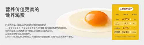 “非笼养鸡蛋不是土鸡蛋的替代品,而是用工业化思维解决品质标准化问题。”蛋品行业分析师李明指出,非笼养模式通过环境控制、科学饲喂和疾病防控,既保障动物福利,又提升鸡蛋营养与安全。研究表明,非笼养鸡蛋的Omega-3脂肪酸、维生素E含量显著高于普通笼养蛋。