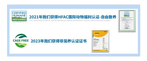 目前,四川信德在广元天星村、金牛村、长梁村等地陆续开建,即将建成国内首个百万羽非笼养基地,年产非笼养鸡蛋超3亿枚。基地通过100%非笼养认证、FSSC22000、HACCP、ISO全系列等多项认证,产品获得了无抗生素认证、可生食、富硒认证等,并出口港澳及供应米其林餐厅,在各个对食材要求严格的渠道都有销售。不仅有国家标准保驾护航,还有挑剔的食客对口感、风味提出了高要求。