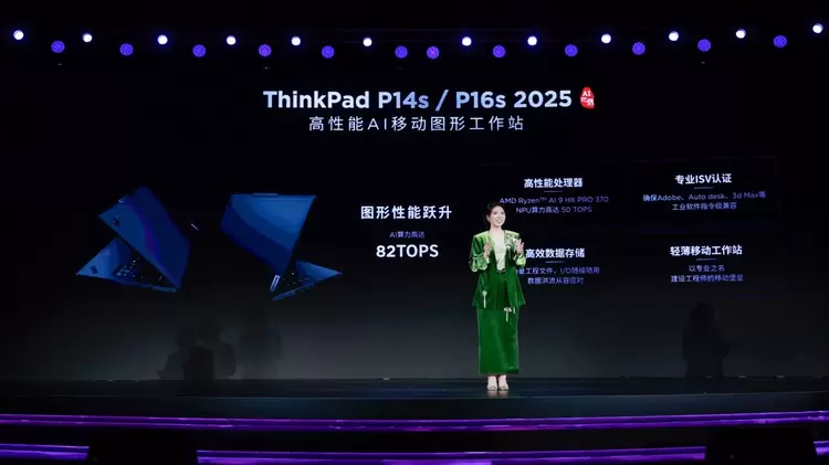 Think AI终端里的性能担当,高性能AI移动图形工作站ThinkPad P14s/P16s 2025 AI元启版,搭载AMD锐龙AI 9 HX Pro 370高性能处理器,轻松完成高负载任务,通过专业ISV认证,可确保Adobe、Autodesk、3d Max等专业软件指令级兼容。不仅如此,丰富的接口设计让其可随时接入专业级外设,海量工程文件随接随用。