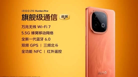 iQOO Z10 Turbo Pro 采用旗舰同款寰宇电竞信号系统,以 24 根环绕式天线带来“横握竖握随便握,信号始终都很稳”的表现。此外,Z10 Turbo Pro 还支持 Wi-Fi 7、5.5G、双频 GPS、全功能 NFC、红外遥控以及支持厘米级精准定位的蓝牙 6.0,通信能力亦是旗舰级。