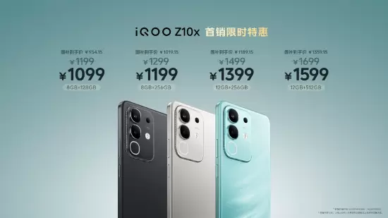价格方面,iQOO Z10 Turbo 系列共有“燃”、“沙漠色”、“云海白”和“星穹黑”四种配色可选,两款产品都提供 12GB+256GB、12GB+512GB、16GB+256GB 和 16GB+512GB 四种存储组合可选,iQOO Z10 Turbo Pro 到手价 1999 元起,国补到手价 1699.15 元起、iQOO Z10 Turbo 到手价 1799 元起,国补到手价 1529.15 元起。iQOO Z10x 共有“风羽青”、“月岩钛”和“星穹黑”三种配色可选,提供 8GB+128GB、8GB+256GB、12GB+256GB 和 12GB+512GB 四种存储组合可选,到手价 1199 元起,首销限时特惠全版本减 100 元,到手价 1099 元起,国补到手价934.15 元起。
