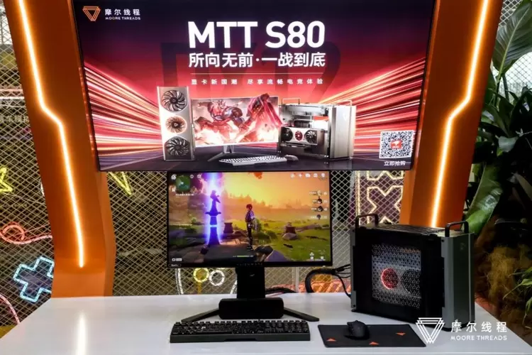 在现场,摩尔线程精心打造了一个“全功能GPU游乐园”,完整展示了从产品到应用的全栈产品矩阵。从面向数据中心的夸娥(KUAE)万卡智算集群,到全功能GPU OAM模组;从旗舰级GPU加速服务器MCCX D800 X2,到备受关注的国产游戏显卡MTT S80——这些硬核产品共同呈现出一幅国产GPU硬件版图,展现了摩尔线程扎实的技术积累。