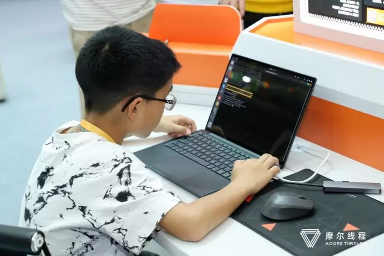 展区内吸引了大量编程少年和科技爱好者,摩尔线程的摩尔学院通过提供易于上手的开发工具和丰富的学习资源,让更多人可以学习GPU开发。展会现场,孩子们围在算力设备前,有的在调试人生第一行代码,有的已经能完成简单的MUSA迁移。
