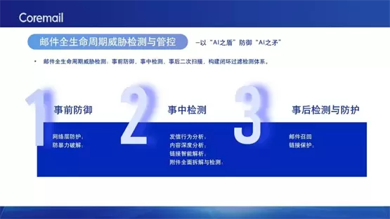 作为互联网之后的又一波技术浪潮,人工智能(AI)已成为推动各行业变革的核心力量,为企业研发创新与提质增效提供了更多可能。作为深耕邮件领域26年的资深企业,Coremail紧跟时代步伐,积极探索AI在邮件领域智能应用与安全防护的落地路径。