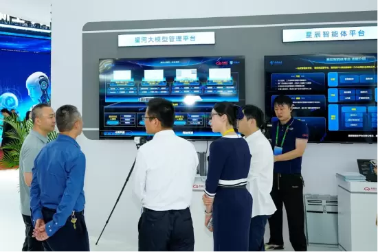 在人工智能展区,中国电信展示了其从基础设施到开发应用平台,再到场景化应用的全栈AI能力。最新升级的AI基础设施底座——星河平台和智能体平台,全面支撑AI规模发展。星河平台实现全模态模型纳管、全链路模型训推,极大提高模型场景适用率。升级后的智能体平台支持多模式灵活开发、低门槛闭环调优、多渠道发布和运营,全方位满足企业AI应用落地需求。