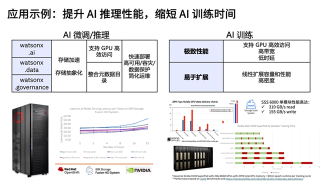 ·AI 调优、推理与训练:其中,用于调优和推理的系统往往采用容器化部署,需要丰富的数据管理功能和接口,同时提供企业级的安全容灾能力支持业务连续性;用于训练的系统需要能支持大规模GPU集群运行所需的读写性能和扩展能力。采用高效的数据存储可以实现数据加速,提升应用效率。