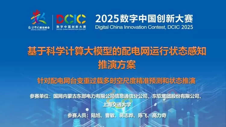 近日,由东软集团与国网内蒙古东部电力有限公司、上海交通大学共同开发的《针对配电网台变重过载的多时空尺度精准预测和状态推演》项目,成功晋级数字中国建设峰会2025创新大赛・人工智能赛道“基于科学计算大模型的配电网运行状态感知推演方案”总决赛,并荣获三等奖。