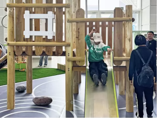 童年之家通过原木材质构建的沉浸式展区,将“从自然中学习”的理念具象化。产品突破传统设计边界,通过模块的自由组合,融入跑、跳、爬、荡等多元运动功能,并巧妙结合益智元素,全面激发儿童探索欲与创造力。